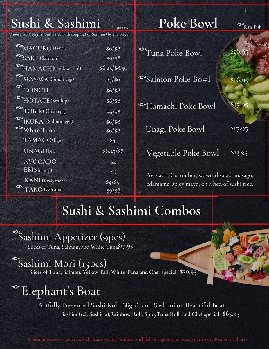 The menu at Elephant Thai Restaurant offers a thoughtful blend of traditional Thai dishes alongside a selection of fresh sushi and light appetizers. It reads like a casual yet refined array of options, suited for both relaxed weeknight dinners and more sociable gatherings where sharing plates and enjoying varied flavors bring the table to life.